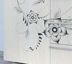 Шелкография для декора фасадов мебели применяется сравнительно недавно, но уже успелазавоевать любовь покупателей. Современная шелкография - это техника многослойного нанесения краски на стекло методом ультрафиолетовой печати. Изначально трафареты для нанесения рисунка изготавливались из шелковой ткани. Сейчас технологии шагнули далеко вперед ислово «шелк» осталось только в названии метода. Для печати используются краски УФ-отверждения, за счёт этого обеспечивается прочность и износостойкость изображения. Специальные связующие в составе краски позволяют нанести более толстый красочный слой, чем при фотопечати. Благодаря этому, изображение будет оставаться на стекле длительное время, краска не выгорит и не поменяет цвет. При нанесении шелкографии возможно использование как одного, так и нескольких цветов. А использование различных материалов в качестве основы для печати позволяет достичь великолепных результатов по декорированию фасадов.