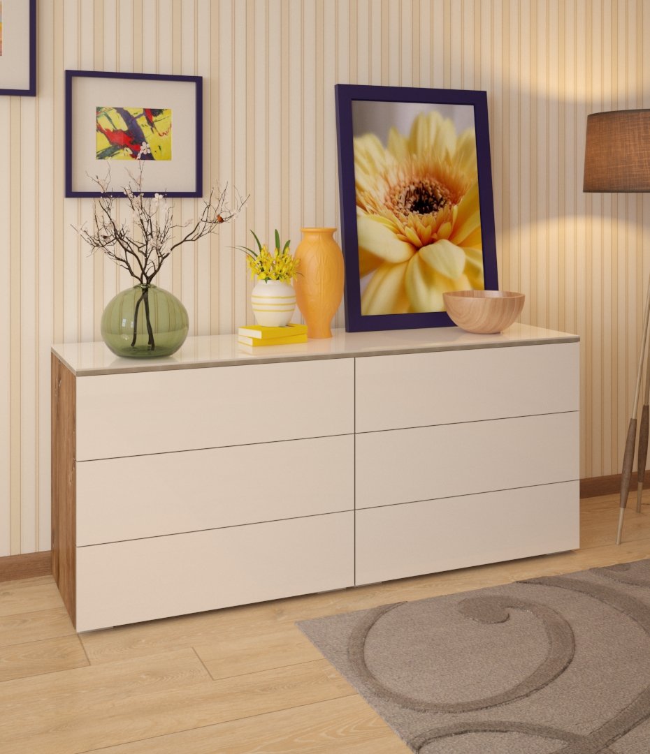 Планируя создать мягкий и легкий интерьер, нужно позаботиться о стиле всех основных элементов, которые будут использоваться для декорирования помещения. Комод является незаменимой частью меблировки. Данная модель имеет достаточные размеры, чтобы вместить внутри все необходимое, а также привлекательный внешний вид, который подчеркивают светлые тона фасадов и основы.