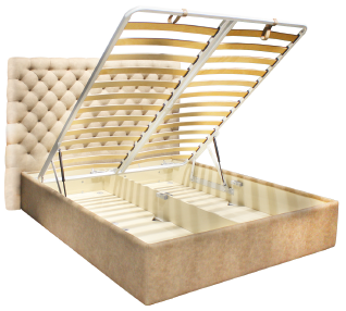 Подъемный механизм имеет надежную конструкцию и оснащен газовыми амортизаторами, которые позволяют легко поднимать основание спального места и удерживать его в открытом положении.