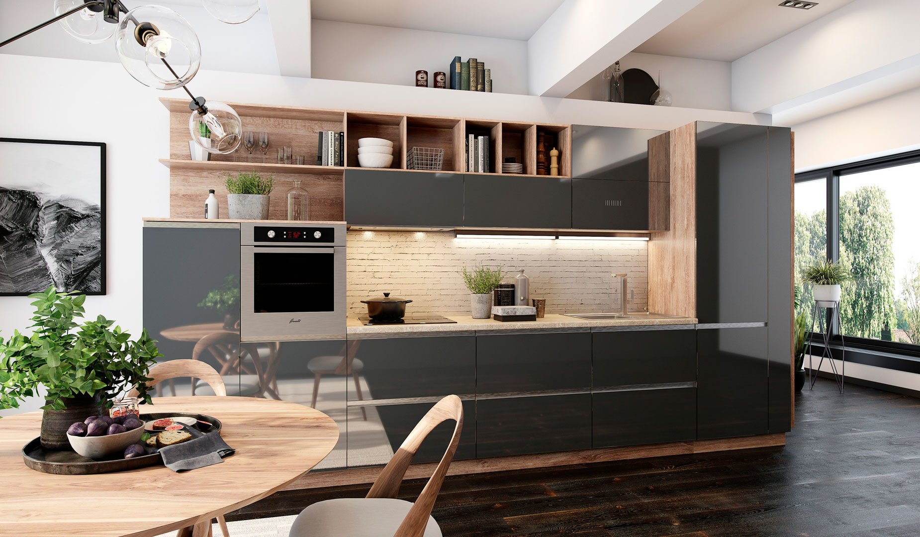 Со вкусом и знанием дела. У вас на кухне, как в Греции, всё есть: и безупречный порядок, и сияние чистоты, и простор, и свежие продукты, и миллион идей прекрасных блюд. А первый помощник во всех делах вкуса — стильный гарнитур «Эссенс».