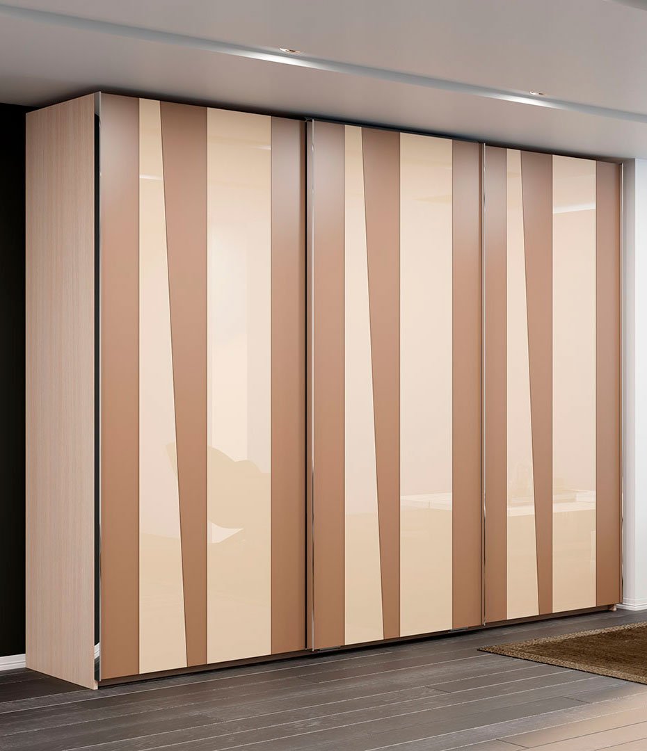 Фасады, изготовленные с применением цветной пленки, отличный элемент отделки дверей шкафов-купе. Специальная декоративная пленка наносится на обратную сторону стекла. А с лицевой стороны можно нанести витраж, пескоструйный рисунок, фотопечать или шелкографию. Также это стекло допустимо комбинировать с различными материалами, а также использовать в фасадах с криволинейными разделителями. Преимущества использования пленки очевидны: материалы в её составе экологичны, не горючи и не токсичны. Она не растягивается, не дает усадки, устойчива к выгоранию и на протяжении всего срока эксплуатации не меняет своих свойств. В закрытом помещении срок эксплуатации стекла, тонированного пленкой, не ограничен. Такой фасад неприхотлив в уходе: он легко очищается с помощью обычных моющих средств.