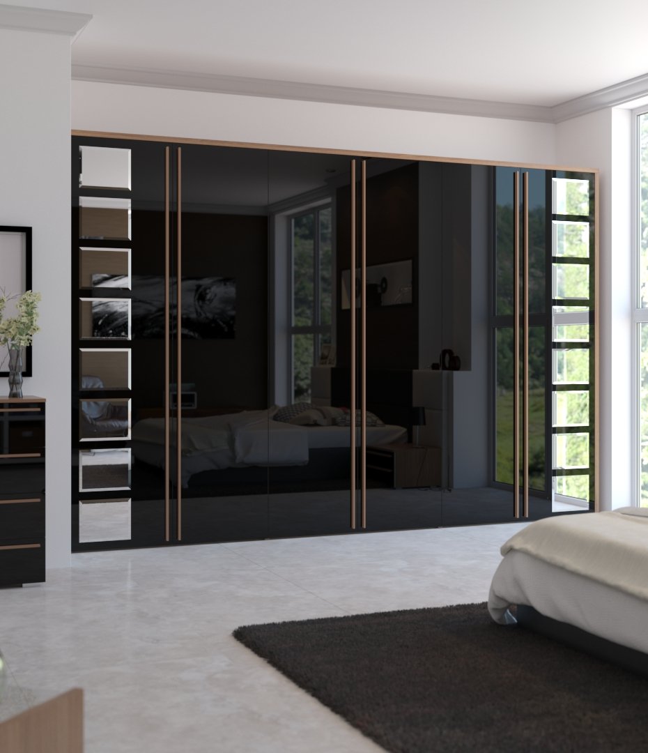 Черный глянец — король брутальных спален. Эта модель создает интерьер. С ней можно не добавлять лишних деталей. Вы понимаете, о чем мы.