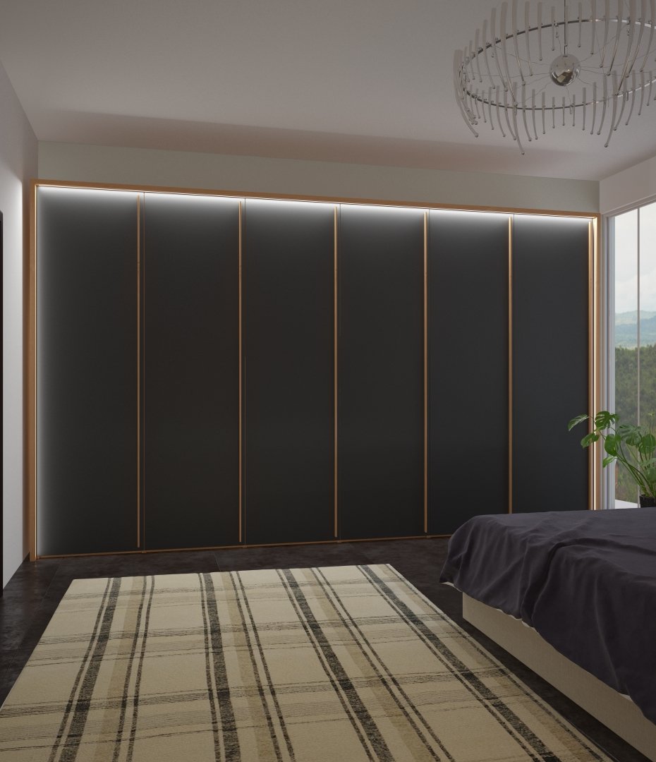 Шкафы с распашными дверями могут и должны оформляться изящной подсветкой. В наше время она такой же элемент дизайна, как и коллекционные ручки. Особенно, если створки шкафа сделаны из материалов коллекции ALVIC LUXE.