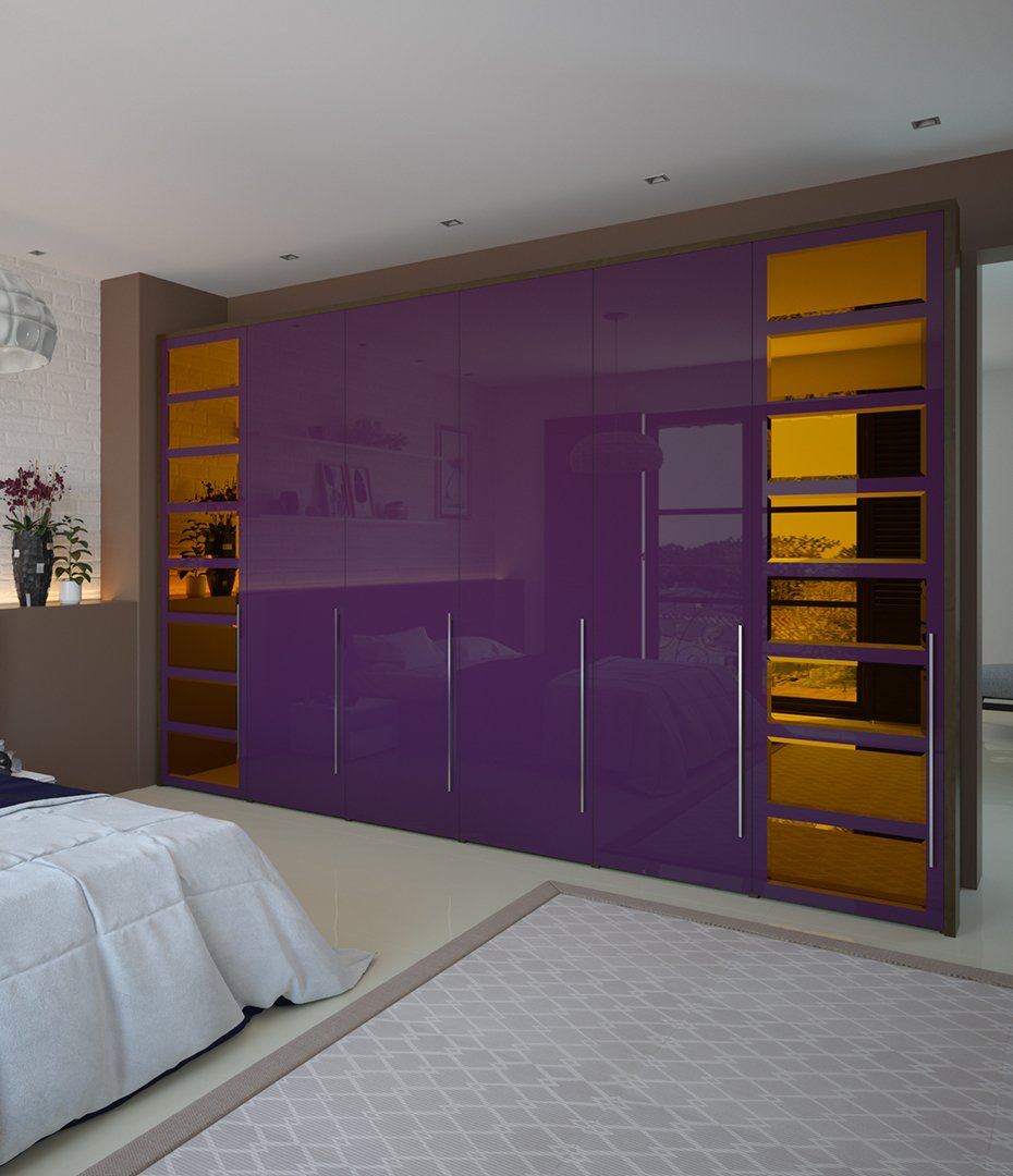 Эта модель поражает смелостью выбора. Створки этого великолепного авангардного шкафа выполнены в самом модном цвете сезона 2018-19 годов — ультрафиолете. Если вам по душе добрый китч и влияние моды, то эксперты назвали еще 21 оттенок. Для оформления своего шкафа вы можете выбрать любой. Перейдите в раздел «Свойства товара», в категорию «Материалы» и наслаждайтесь обилием выбора.